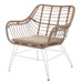 Butaca Ariki fabricada con estructura de acero color blanco, asiento y respaldo en rattán