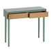 Consola fabricada en madera DM acabada en color verde con dos cajones, diseño elegante y con personalidad.
