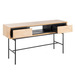 Escritorio estilo industrial fabricado aon estructura principal de madera de caucho y dm con patas de hierro lacado en negro