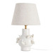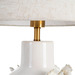 Lámpara para mesa fabricada con base en cerámica color blanco con pantalla en tejido y pvc