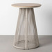 Mesa alta para exterior fabricada en materiales como el acero, rattán PE y polywood acabado natural y crema