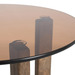 Mesa auxiliar fabricada en madera de caucho color marrón con sobre redondo en cristal templado