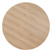 Mesa comedor redonda fabricada con tablero de madera DM acabado en color natural y patas de hierro