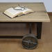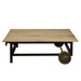 Extraordinaria mesa de centro transformada a partir de un antiguo carro usado durante décadas en una fábrica de muebles artesanales. Se ha pintado la estructura de hierro con un tratamiento epoxy secado al horno en color negro. Se han colocados ruedas de fundición en tono natural y se ha colocado una tapa de mesa hecha a medida, de madera maciza de 18mm de grosor, con un tratamiento envejecido con tinte a base de aceites naturales de alta calidad.