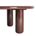 Mesa de centro redonda fabricada en madera DM lacada en color granate, diseño actual con gran presencia visual.