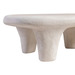 Mesa de centro Wilma fabricada en poliresina acabada en color blanco, especial para uso interior, con diseño moderno y líneas suaves.