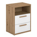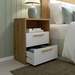 Mesita de noche fabricada en melamina de alta calidad color roble albar y blanco poro