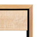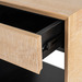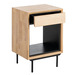 Mesita de noche Sintra fabricada en madera de caucho y dm acabado natural con patas de hierro lacado color negro