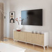 Mueble de televisión fabricado en melamina de alta resstencia color blanco poro y roble alma con cuatro puertas