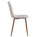 Esta silla Dikor combina comodidad y elegancia. Silla tapizada en resistente tela 100 % poliéster con un bello diseño de rombos en el respaldo y un cómodo y mullido relleno de espuma de poliuretano. Las patas están realizadas con estructura tubular redonda de acero reforzado con acabado imitación madera natural. Es perfecta para colocar alrededor de la mesa del salón o comedor y hacer de la estancia un lugar funcional y sofisticado. Se integrará fácilmente en diferentes estilos de mesas de comedor. Esta silla de diseño aporta un soplo de aire fresco a cualquier decoración. Las patas requieren montaje. Puede adquirir esta maravillosa Silla de diseño, al mejor precio en nuestra tienda.