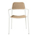Fabricada con estructura de acero lacado, esta silla garantiza durabilidad y estabilidad frente al uso diario. El asiento y respaldo de cuerda trenzada aportan comodidad, ventilación y un toque decorativo contemporáneo, además de facilitar su mantenimiento.