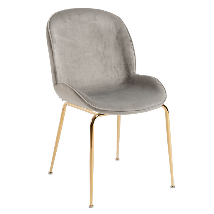 Silla de diseño Shel Golden con estructura metálica en color dorado y asiento en terciopelo
