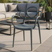 Su diseño con reposabrazos ofrece una mayor comodidad, mientras que su estructura ligera y apilable facilita el almacenaje.