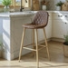 Taburete bar Leo Diamante fabricado con estructura de acero reforzado color natural y asiento en polipiel